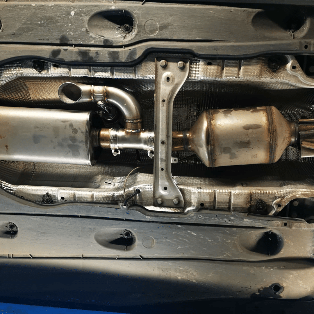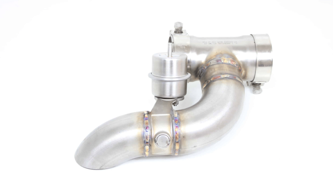 Deze cut out klep past tussen downpipe en middendemper, en is met klemmen te monteren.