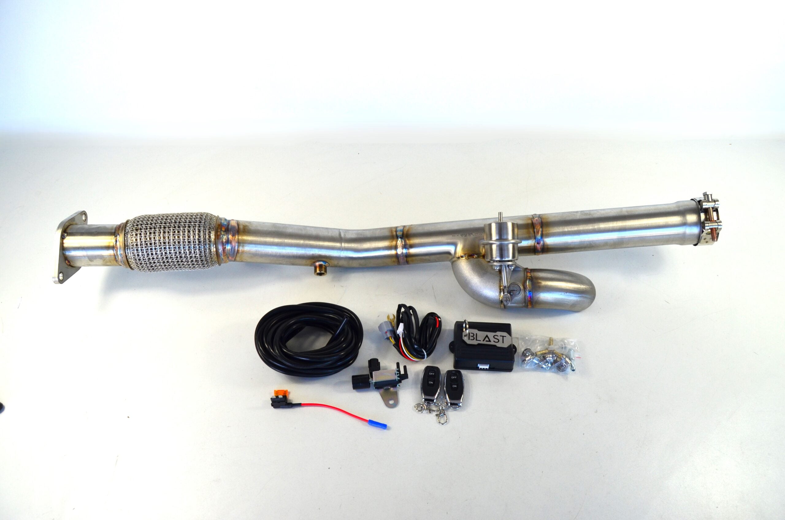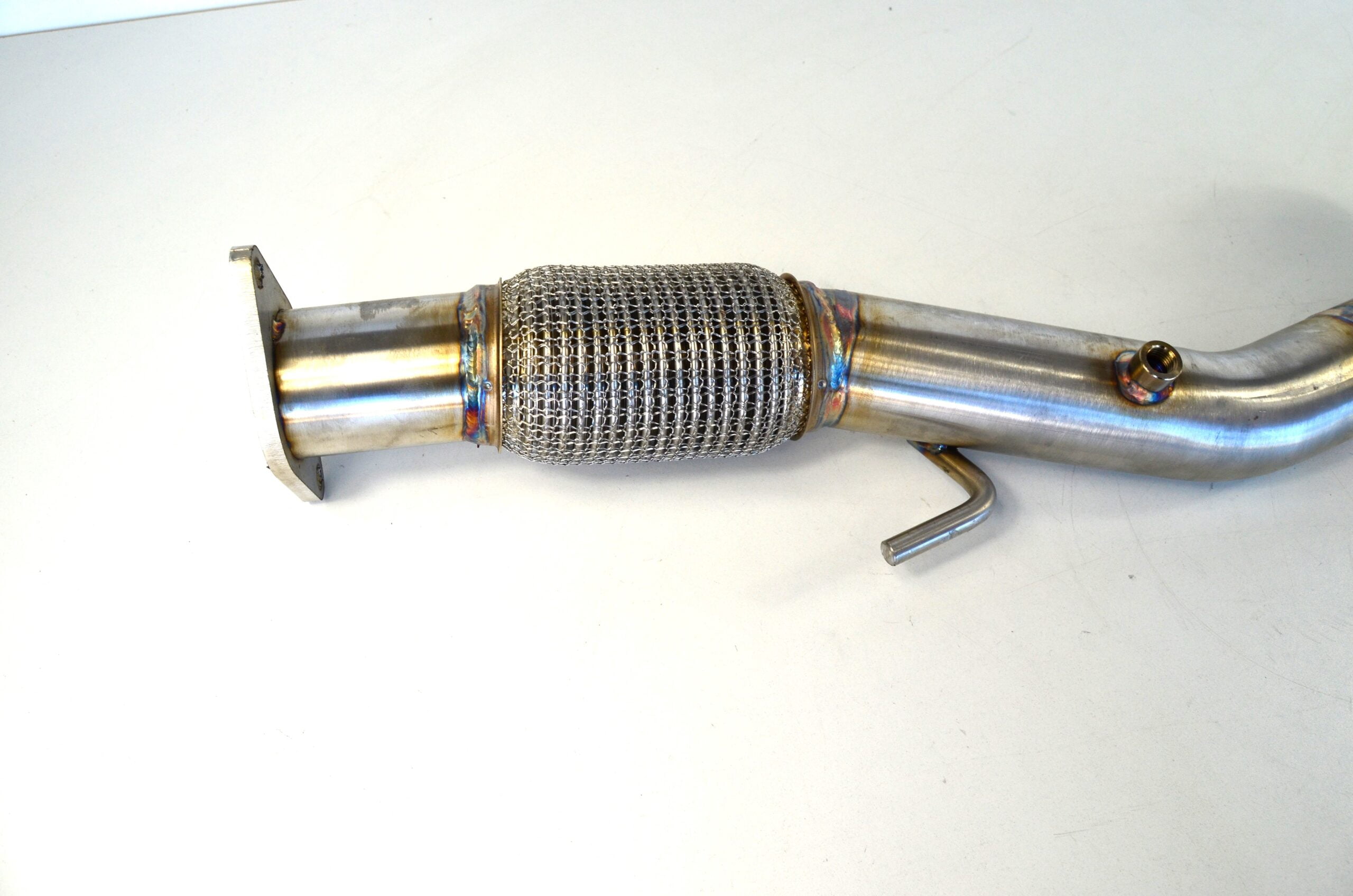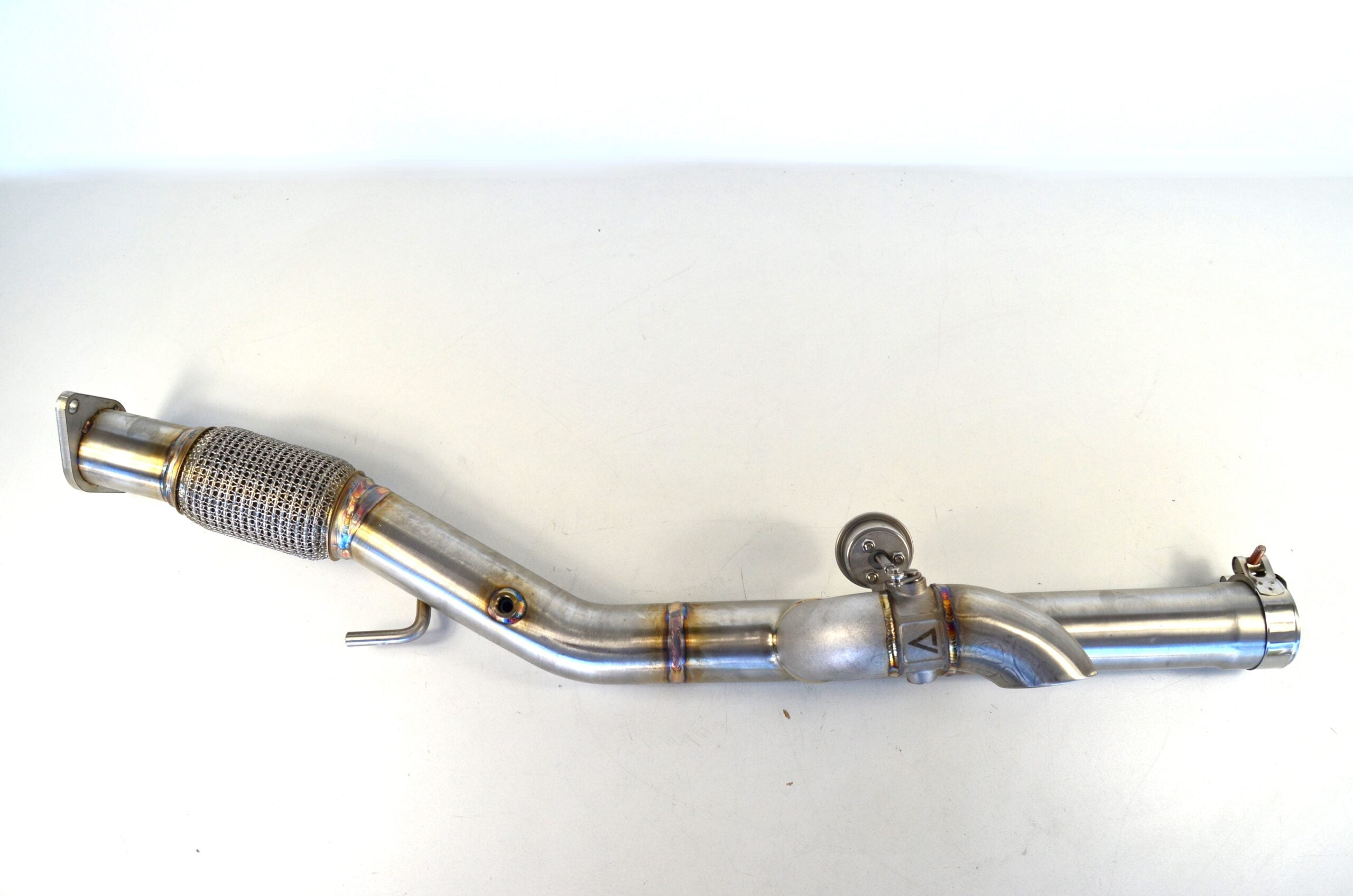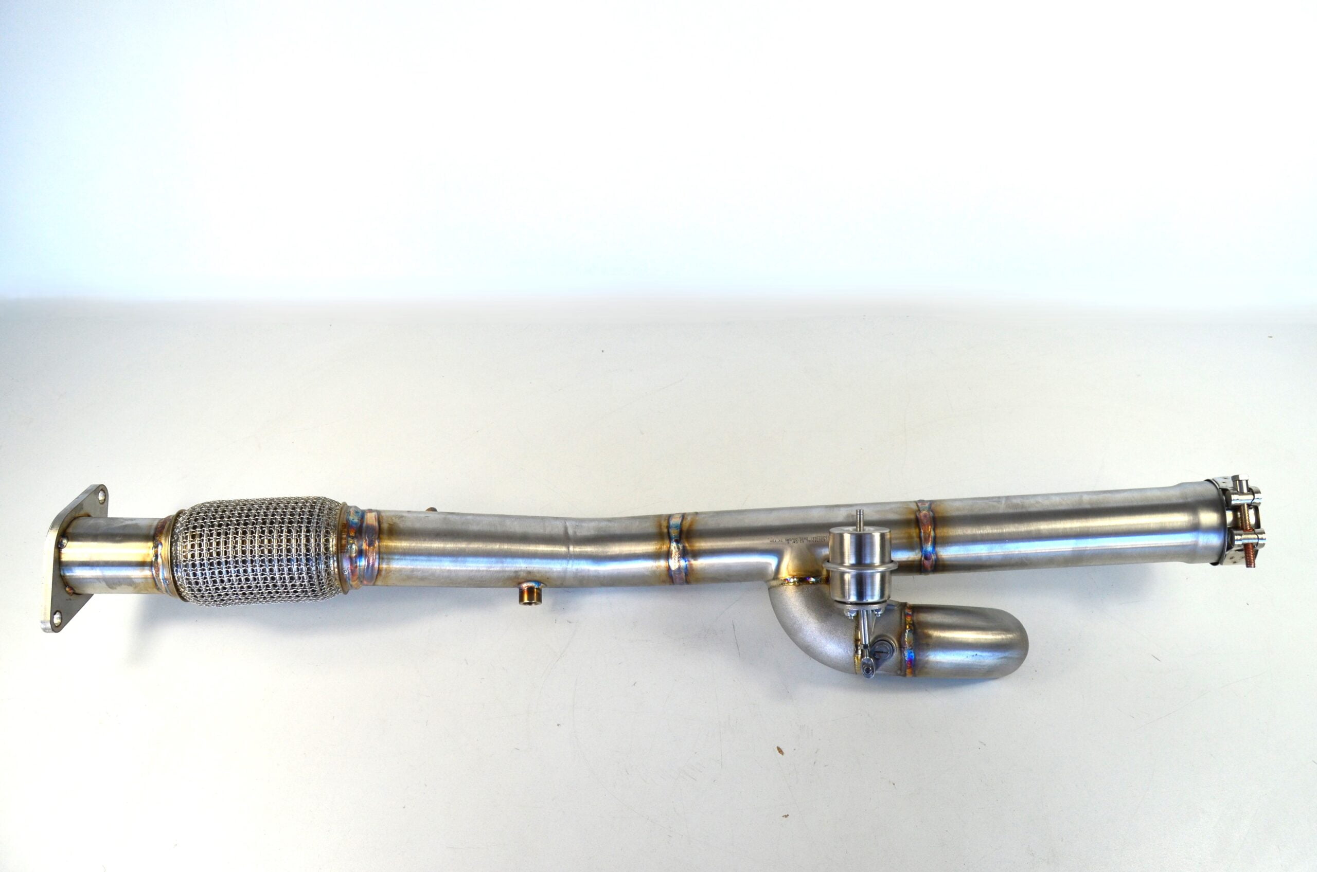 Dit deel sluit aan op de bestaande uitlaat met 2-gaats flens aan de voorzijde en 65mm aansluiting aan de achterzijde.